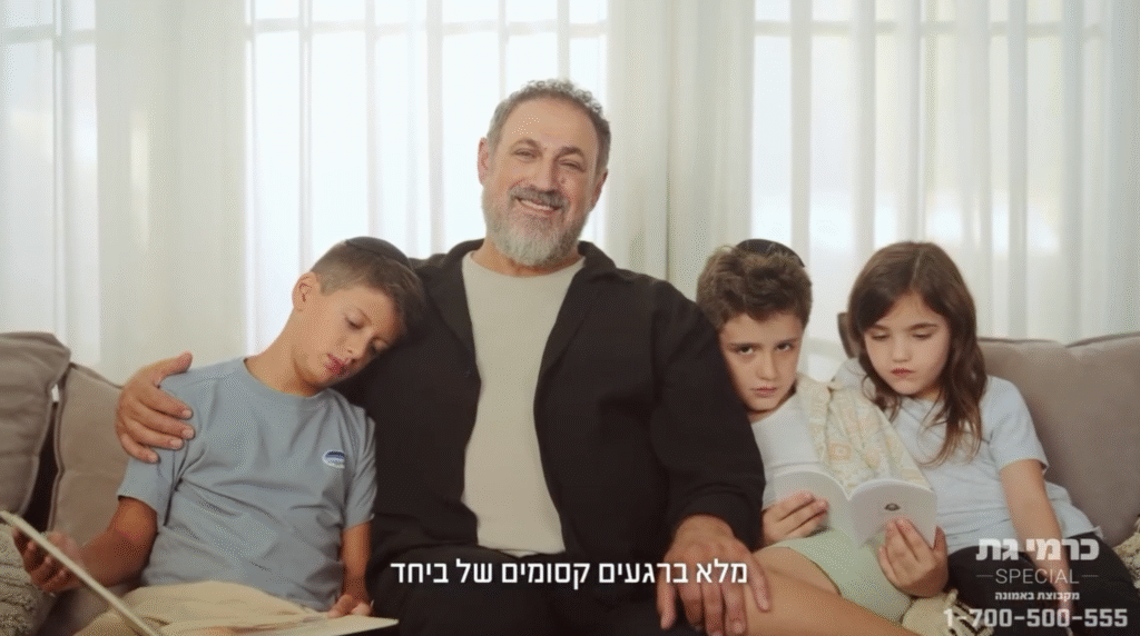 ליאם, לוקה וסהר בפרסומת לפרוייקט הנדל״ן אמונה בכרמי גת